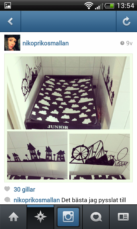 Instagram bjuder på mycket inspiration och jag har "printscreenat" en del på telefonen som jag tänkte visa er nu! En massa pyssel med dekorplast framför allt, en del till barnrummet.. Det står ovanför bilden vilken användare som lagt ut bilden.